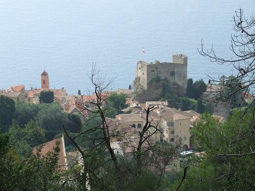Partenza dalla piazza pedonale di Roquebrune Village ( il paese vecchio); si risalirà attraverso il paese vecchio per poi inoltrarsi nel bosco per un erto sentiero che zigzagando risale il pendio, poco oltre si attraversa una strada e si seguita a salire nel bosco di lecci andando poi a raggiungere la cresta che cominceremo a seguire.